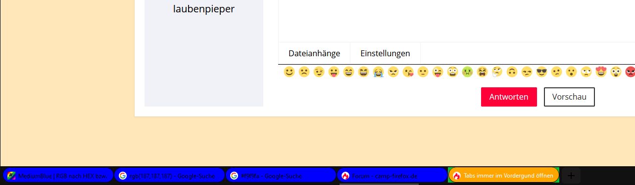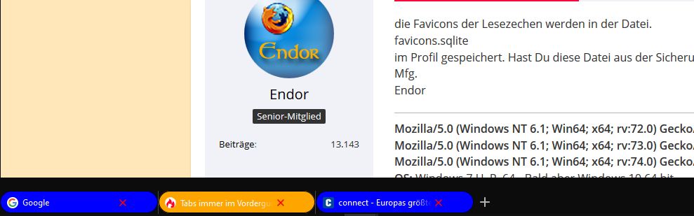 Hallo Spezies, seit der Installation auf 73.0b3 wird der nächste angewählte Tab im Hintergrund geöffnet.