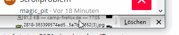 Jetzt passt alles, das Downloadfenster wird rechts in der New-Toolbar = Statusleiste angezeigt und schließt sich nach Ende des Downloads.