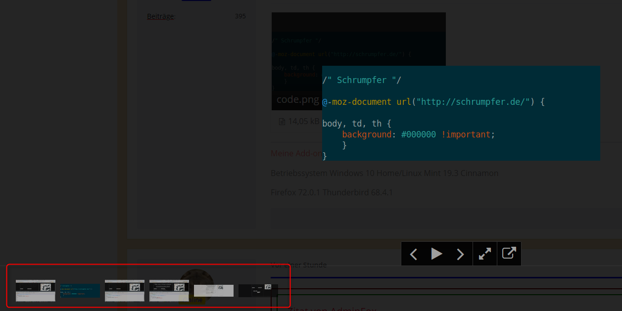 • 2002Andreas Zu deiner frage aus dem #46 ob ein anderer Code aktiv ist nun in der userContent.css befindet sich zur zeit diese Codes.
