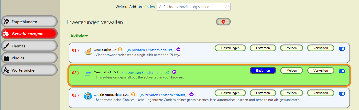Add-ons-Erweiterungen