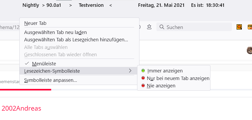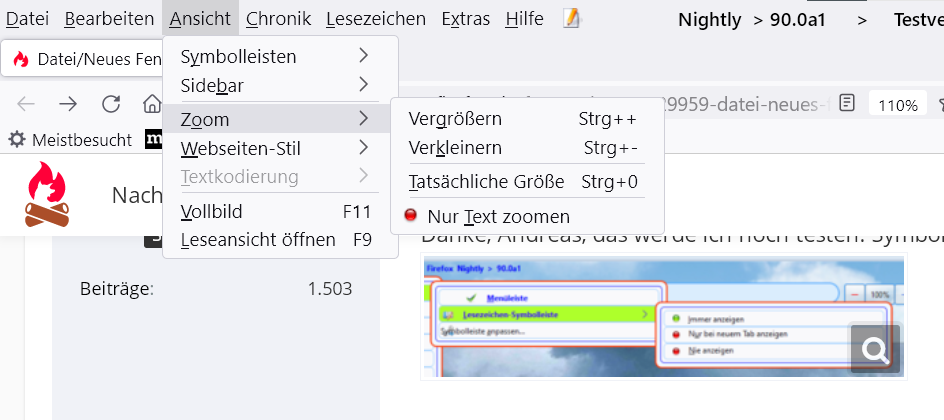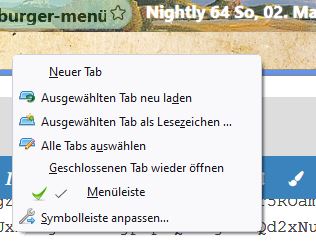 Im Menü Ansicht alles erledigt, aber im Kontextmenü die Button back und forward haben bei Hover wieder eine Überlagerung, bekomme ich nicht weg. Du hattest ja folgenden Code erstellt, damit war bisher auch alles gut, aber im Nightly nicht mehr. Die rechten vier Button funktionieren damit immer noch.