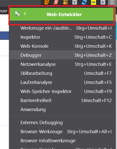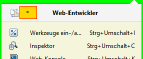 Wenn dieser, auch in Teilen, aktiv ist, schließt im Hamburger Menü bei Klick auf Webentwickler das hinter liegende Unterpanel sofort wieder.
