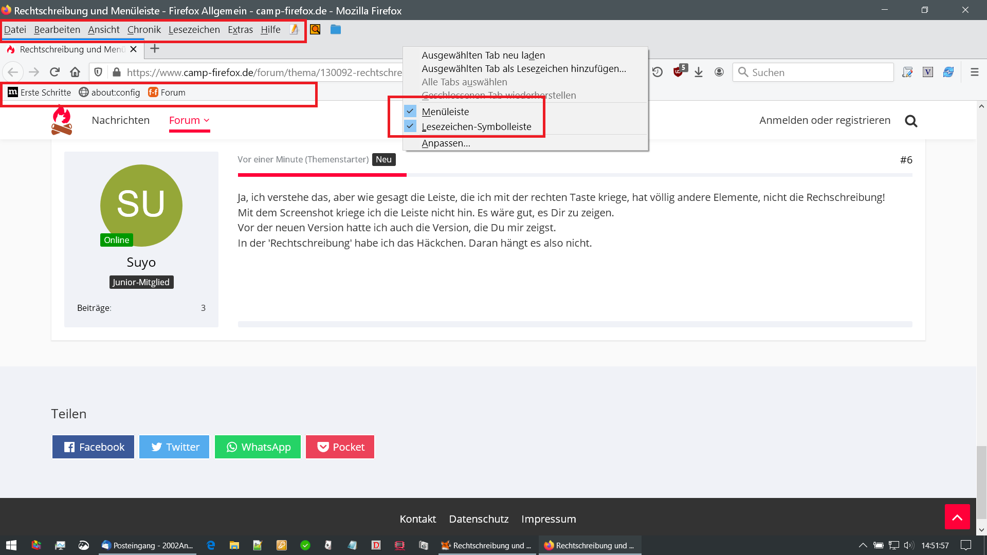 Mein alter Computer ist kapput gegangen, da hatte ich Firefox auf alles eingestellt, dass ich brauchte. Jetzt mit der neuen Version, klappt dass nicht mehr. Zwei Fragen: