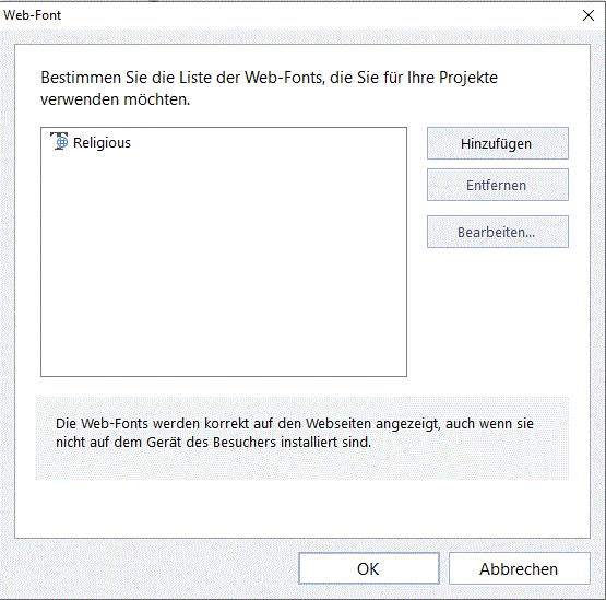 Für eine korrekte Darstellung des Sonderzeichens für "verstorben" auf meiner Website (Editor: Incomedia Website X5 Evo, Version 2019.3.14) habe ich den Webfonts "religious standard.ttf" installiert und verwendet. Bis vor kurzem wurde dieses Sonderzeichen auch in Mozilla Firefox korrekt dargestellt. Heute nun bemerke ich, dass in Firefox stattdessen ein "e" etwa im Stile des Symbols für Microsoft edge angezeigt wird (s. unten, Font-Darstellung.gif). Die Installation von Tranquility Reader schaffte keine Abhilfe. Was ist die Ursache, welche Abhilfemöglichkeiten gibt es? In Microsoft edge wird die Seite exakt dargestellt (s. unten, Font-Darstellung_2.gif).