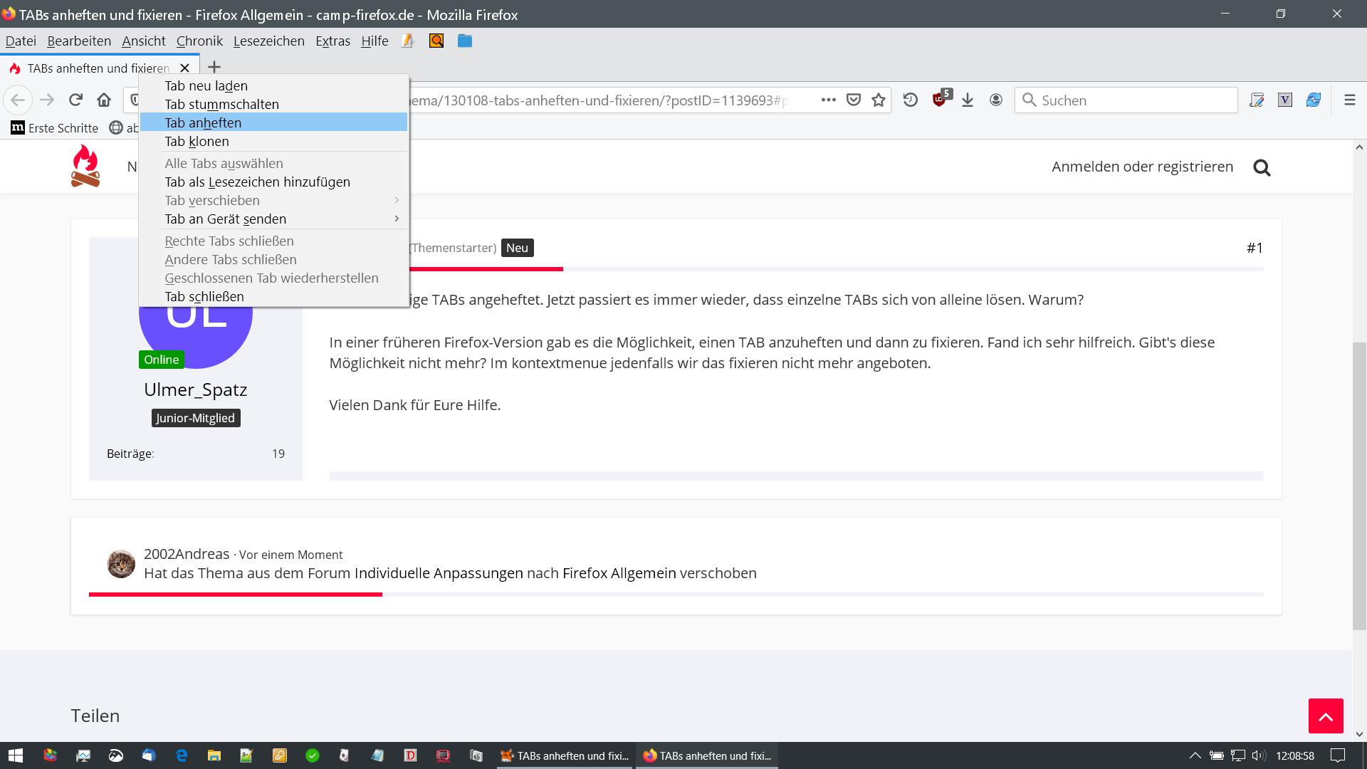 TABs anheften und fixieren