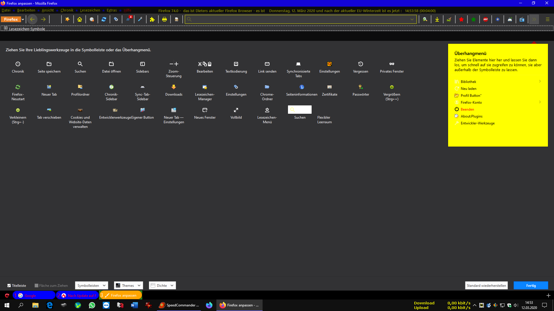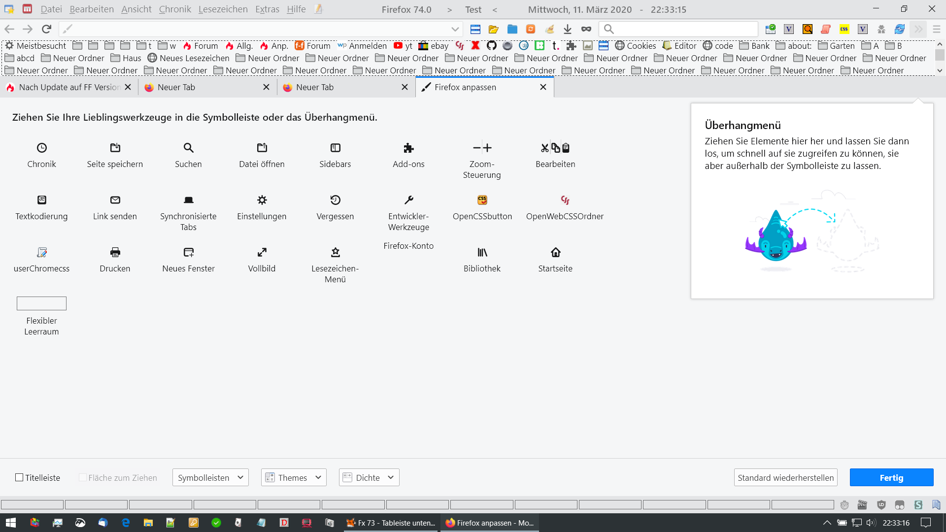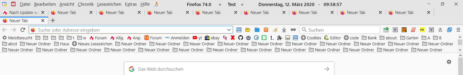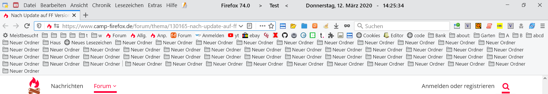 Nach Update auf FF Version 74.0 Einträge Lesezeichen-Symbolleiste nur untereinander