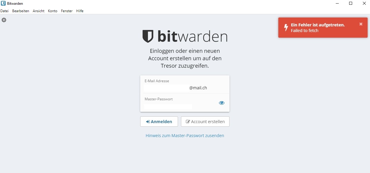 im Screenshot ist seine Bitwarden-Anwendung, wo er sich einloggt und dort erscheint eben diese Fehlermeldung 'Fail to fetch'... Sicherheits-Software wie Avast hat er deinstalliert ....
