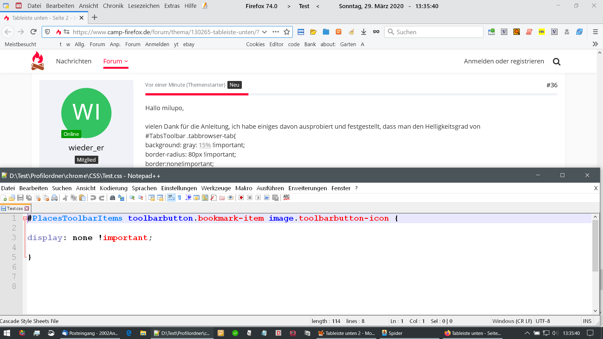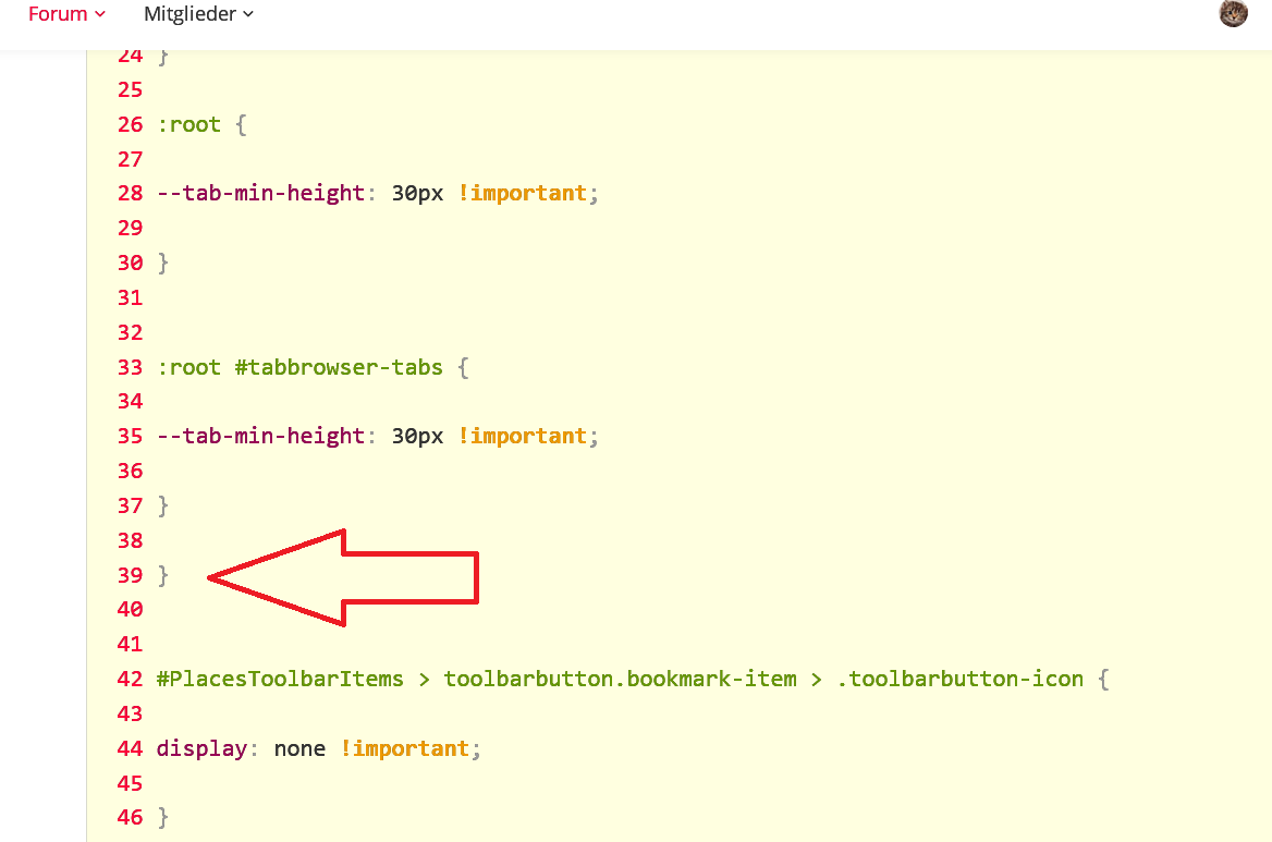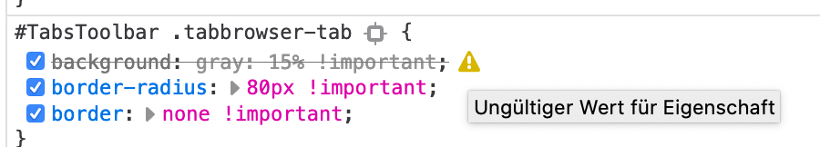 • Mache mal ein Bildschirmfoto vom Inhalt der Datei userChrome.css.