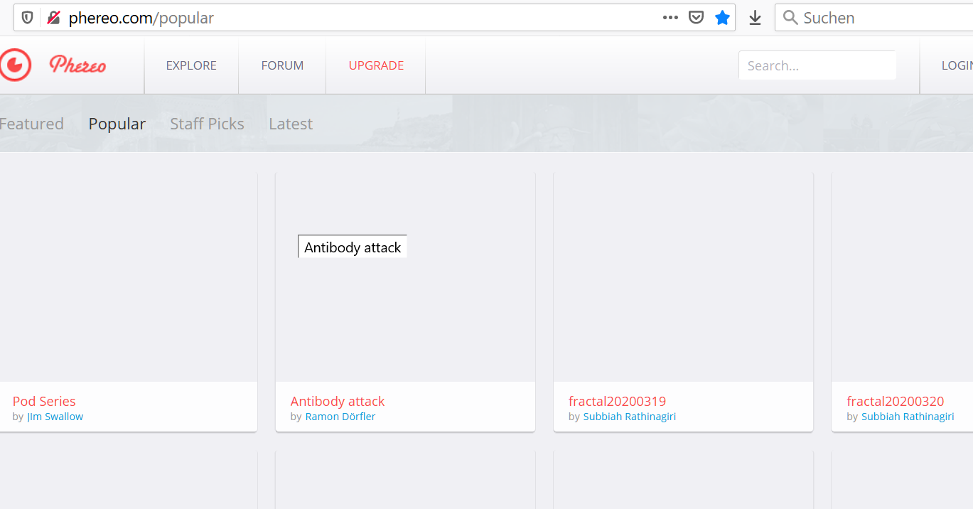 • ich hab nicht versucht erst die Seite via https zu laden sondern diesen Link http://phereo.com kopiert, ins Nightly kopiert und dann auf EXPLORE geklickt und es erschienen keine Bilder (weil die Bilder per https eingebunden sind)