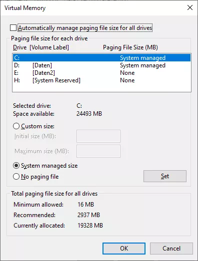 • Wie gross ist denn die für den PC ausgelegte Zwischenablage, wird diese von Windows selbst verwaltet und wie viel Arbeitsspeicher hat der PC?