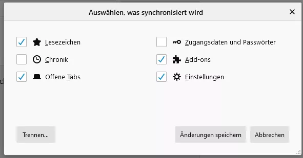 Anschließend habe ich den Browser nur wieder an das Mozilla Sync Konto angebunden.