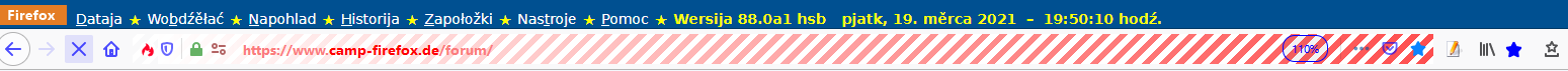 • Ich habe jetzt mal bei #urlbar-background in meinem CSS-Code left: 2em; z-index: -2 dazugefügt und die Prozessleiste funktioniert nun: