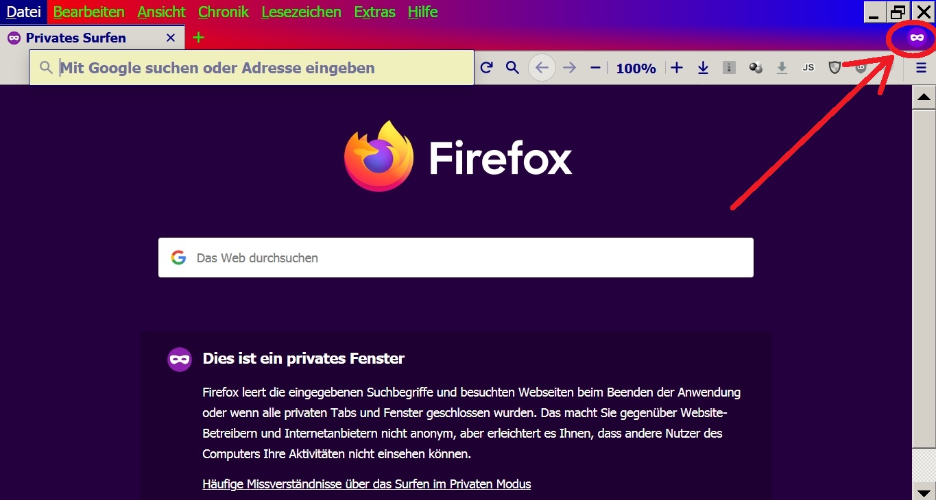 Beim privaten Modus sind alle features wie im normalen Standardfenster.