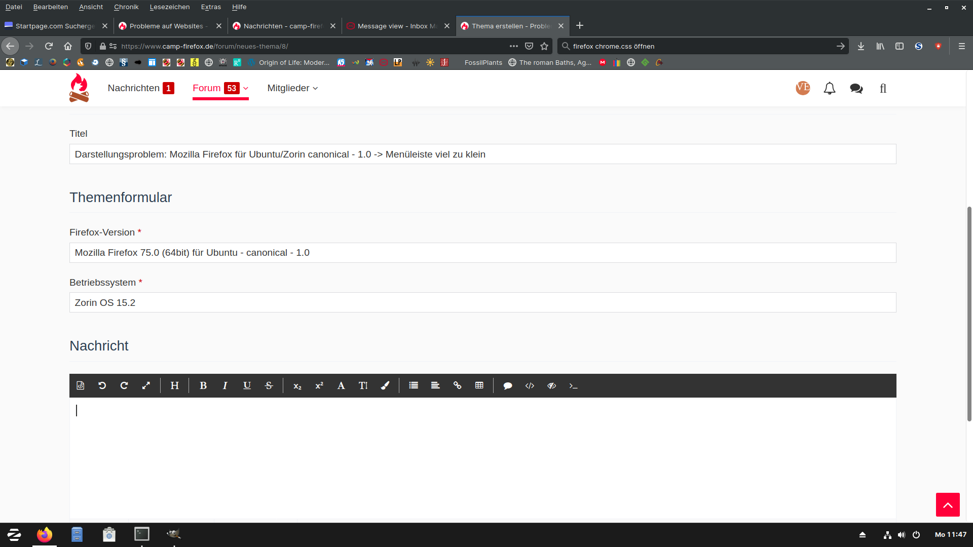 Darstellungsproblem: Mozilla Firefox für Ubuntu/Zorin canonical - 1.0 -> Menüleiste viel zu klein