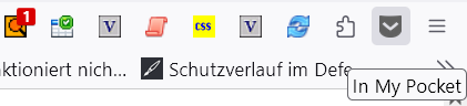 • Das neue Symbol kommt augenscheinlich von der Erweiterung In My Pocket, gehört also nicht zu Firefox.
