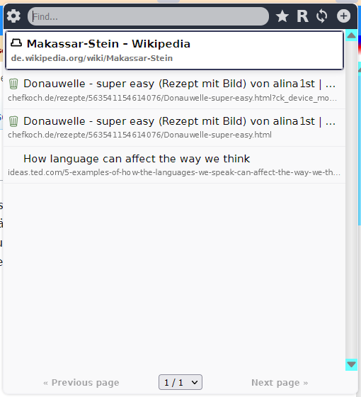 • Ein Popup, das sich öffnet, wenn Sie das Ic-Symbol rechts in der Adressleiste klicken. Das Popup ist der Ort, an dem Sie Ihre gesamte Liste von Elementen ansehen, filtern, archivieren oder löschen können usw.