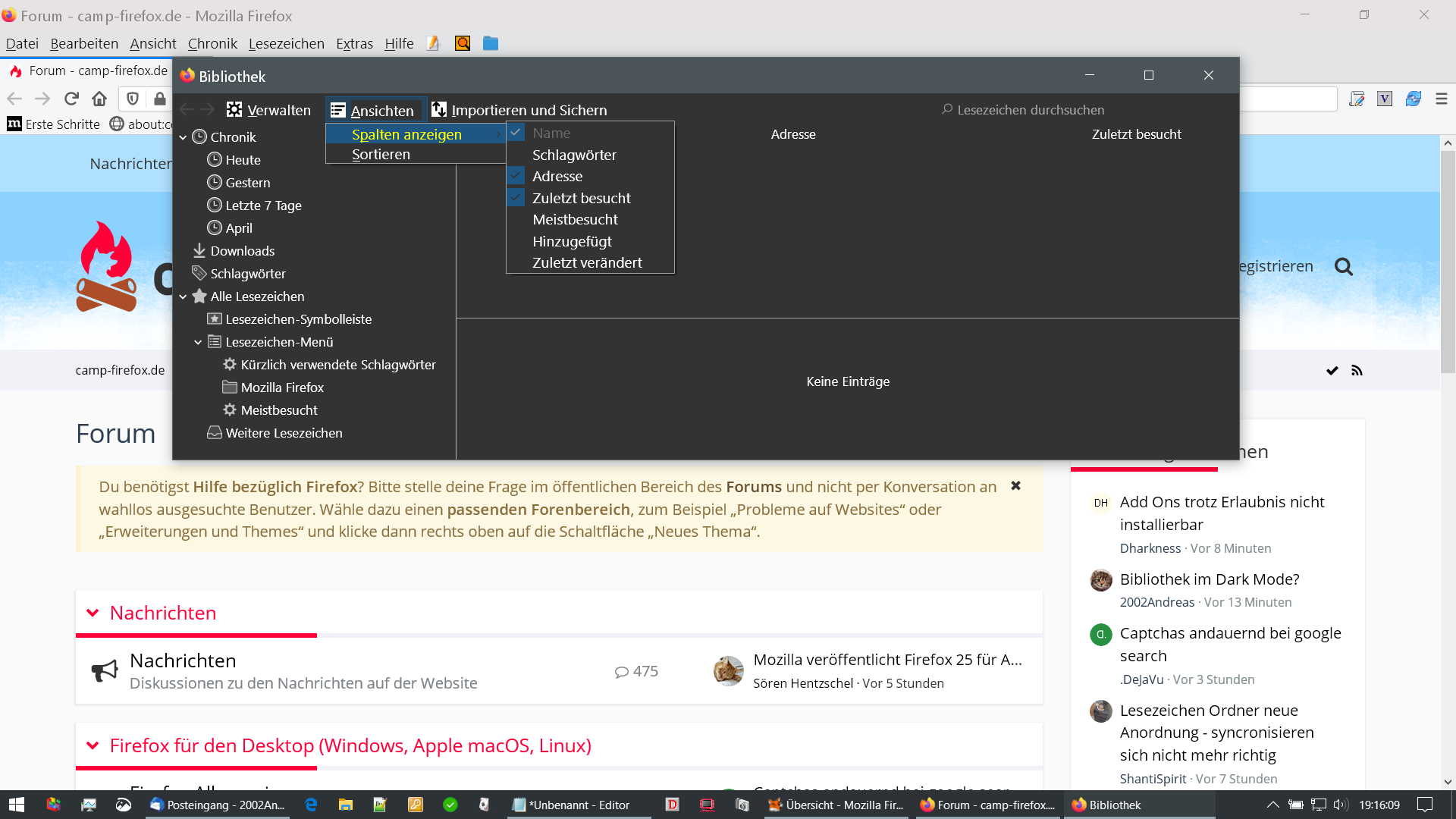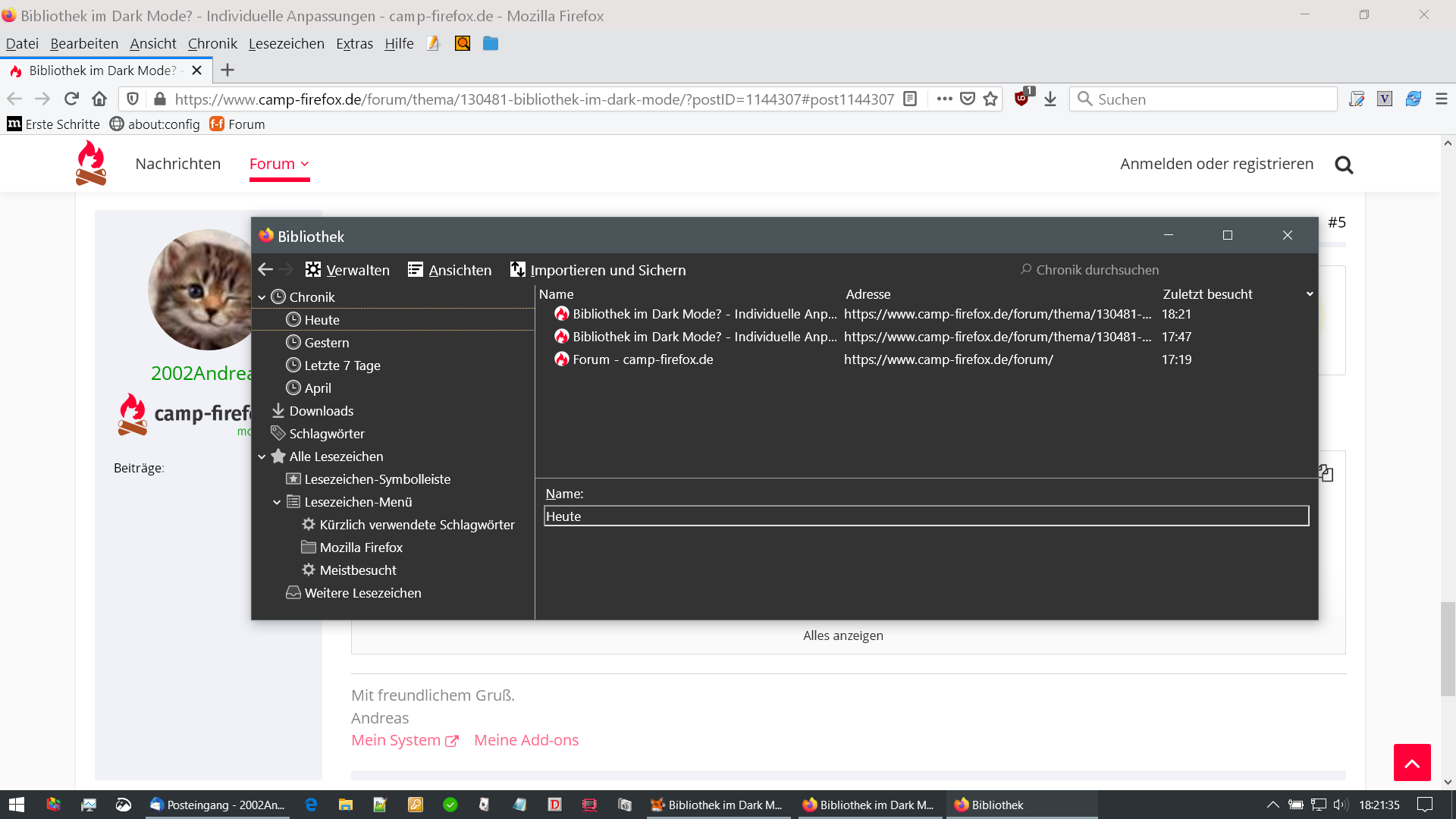 Ich bin ein Dark Mode-Fan (keine Add Ons sondern Änderungen in UserChrome) und hab eigtl. ganzen Fx im DM, geht das auch mit der Bibliothek?