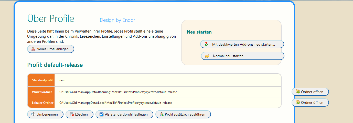 Eine Sache habe ich da noch in about:profile. Die rechten Button "Ordner öffnen", wie bekomme ich die weiter nach links.