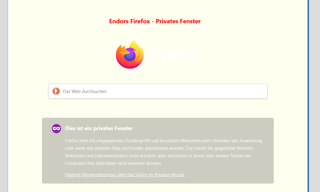 Dann wäre da noch eine Sache, und zwar nach einem Klick auf den oben gezeigten Button, erscheint das private Fenster.
