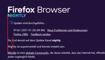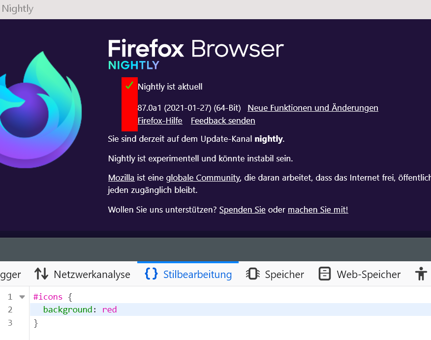 Mit einem frischen Nightly-Profil ist das Problem behoben:
