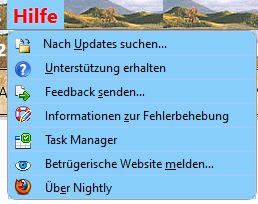 Im Menü "Hilfe" vom Nightly taucht seit heute (ggf. auch schon länger) der Eintrag Task Manager auf. Dieser hat bislang noch kein Icon.