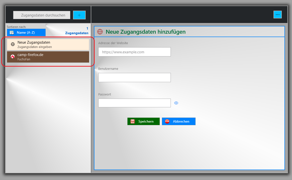 /* oben der Text "Zugangsdaten" */