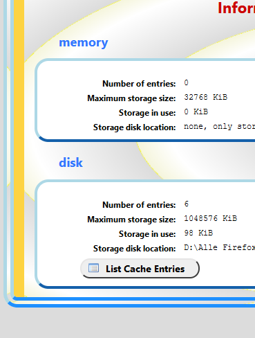• kann es sein das im about:cache einige Symbole nicht mehr angezeigt werden oder hattest Du für memory und disk keine Symbole eingefügt?