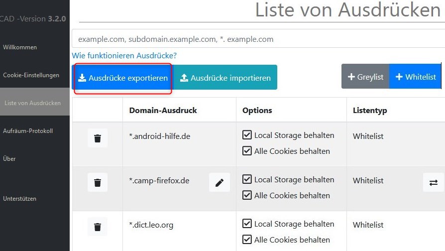 Kannst Du mir noch einen Tipp geben, wie ich die Einträge bei Cookie AutoDelete speichern kann, falls mal eine neue Rechnerinstallation notwendig ist oder ich das auf dem Laptop auch haben möchte?