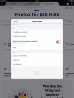 deine Angaben passen nicht. Firefox 25.1 für iOS erfordert iOS 11.4 oder höher. Du kannst also gar nicht Firefox 25.1 auf iOS 9.3.5 nutzen. Vor allem besagt dein dritter Screenshot ja auch, dass du Firefox 8.3 und nicht Firefox 25.1 installiert hast. Das ergibt auch Sinn, denn das war die letzte Version, welche auf iOS 9.3.5 noch lief.