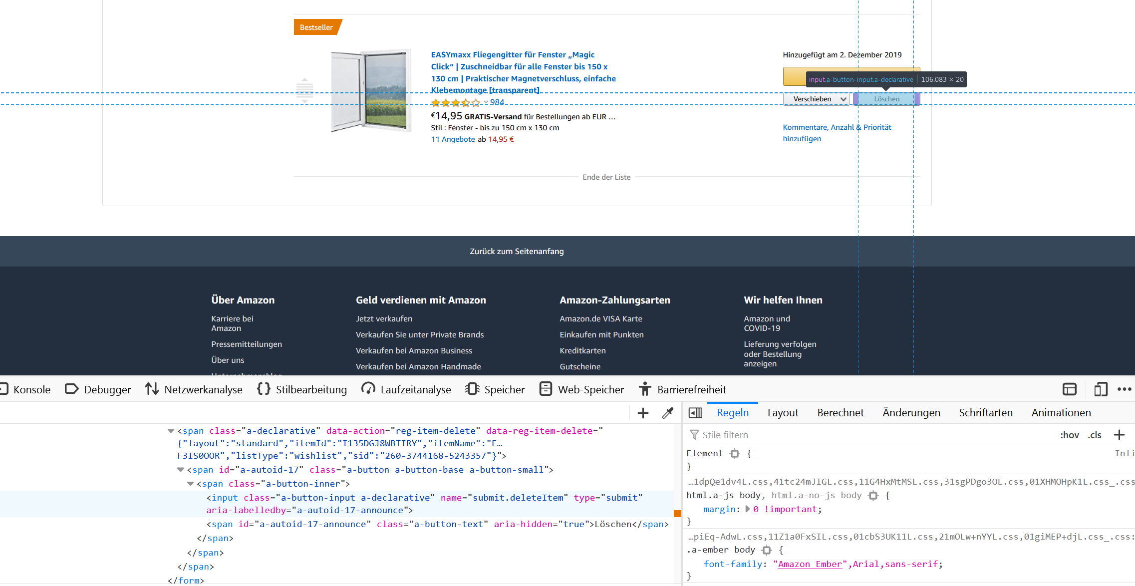 Beachte aber, dass mit dieser Regel nicht nur die Schaltfläche "Löschen" angesprochen wird, sondern beispielsweise auch die Schaltflächen "In den Einkaufswagen" und "Weitere wie diese".