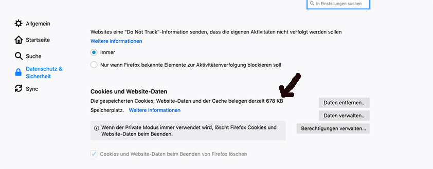 In den "Einstellungen" unter "Cookies und Webseiten" lassen sich plötzlich nicht mehr alle Daten entfernen.