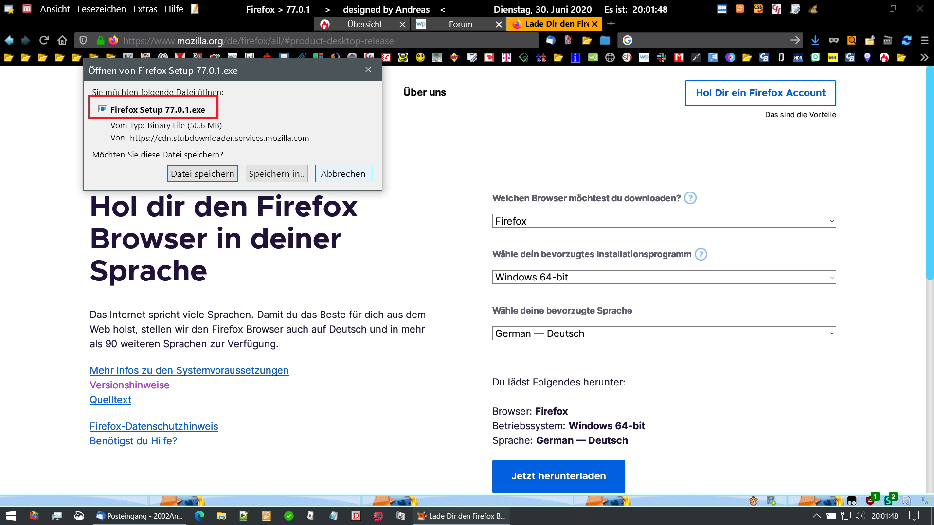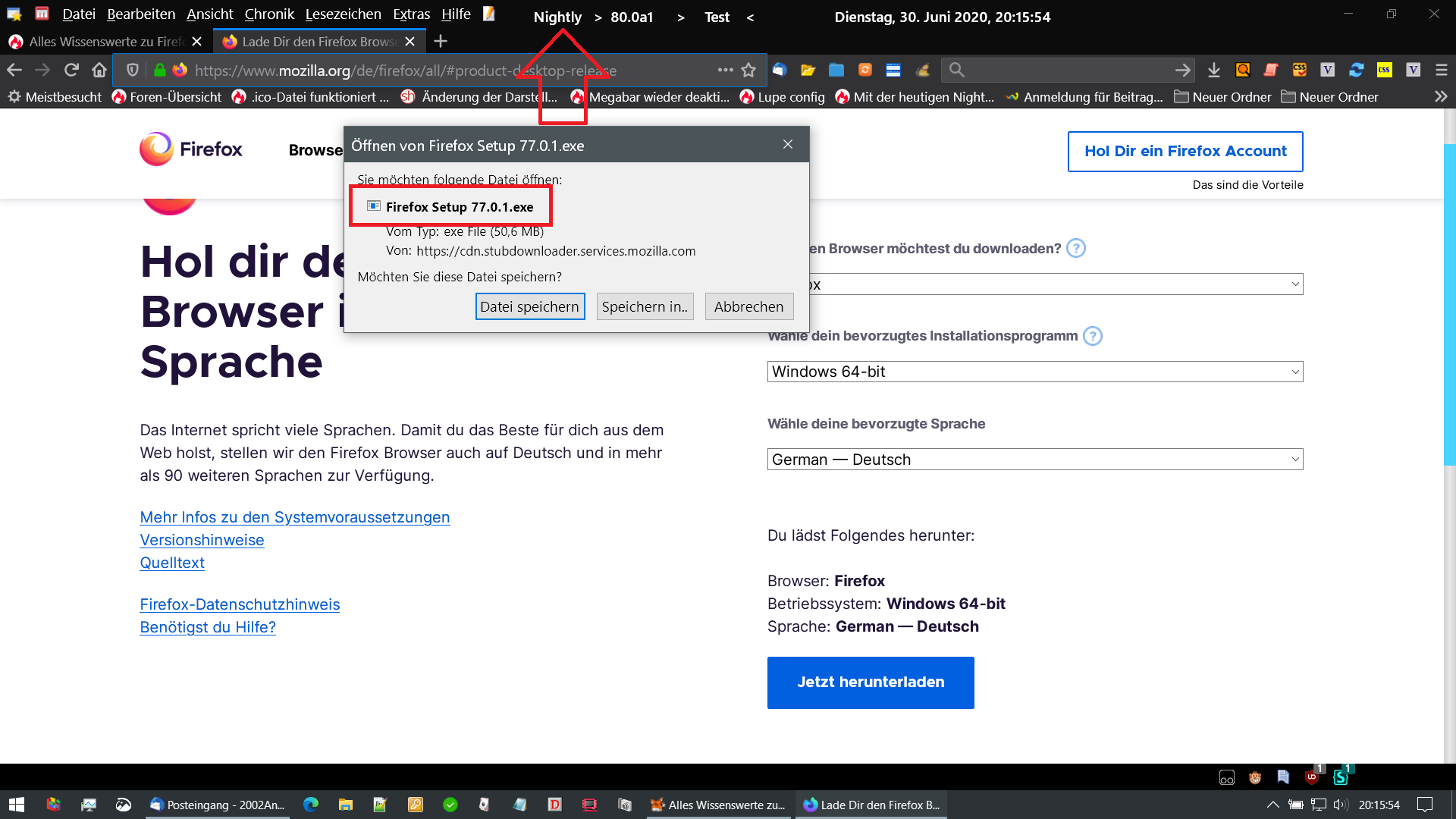 2002Andreas Habe im Nightly die Download-Seite von Mozilla angesehen, da wird mir Fx 78 angeboten. Öffne ich die Seite in Fx 77.0.1 wird mir da noch Fx 77.0.1 angeboten, wie bei dir.