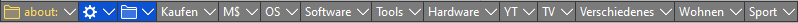 ich hatte meine Lesezeichenleiste so eingestellt, dass die Icons der Lesezeichen ausgeblendet waren und ein Dropdown Marker rechts neben den Lesezeichen-Ordnern erschien.