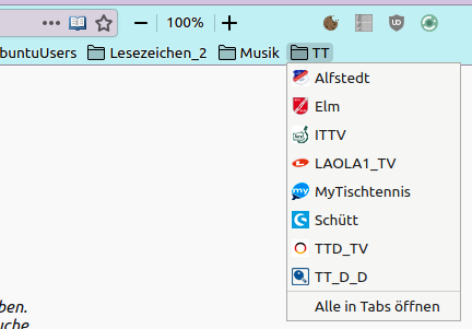 Wenn ich meine Lesezeichen über das Symbol Lesezeichen aufrufe, erscheinen in den selbsterstellten Lesezeichenordnern, der Punkt "Alle in Tabs öffnen".