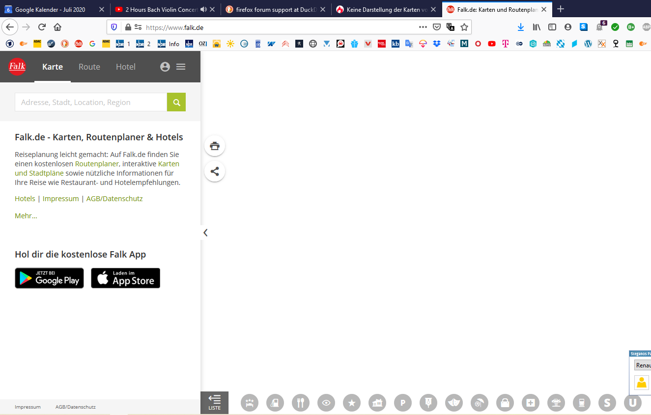 wenn ich den Falk Routenplaner aufrufe, wird keine Kartenansicht gezeigt. Es ist nur eine weiße Seite wo sonst die Kartenansicht war.