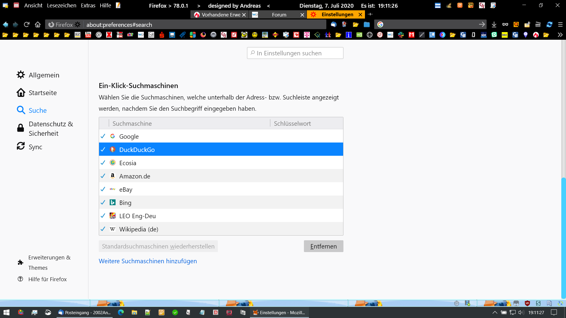 Gleiches gilt für die aufgeführten von Bing, DuckDuckGo, Ecosia und Leo Eng-Deu.
