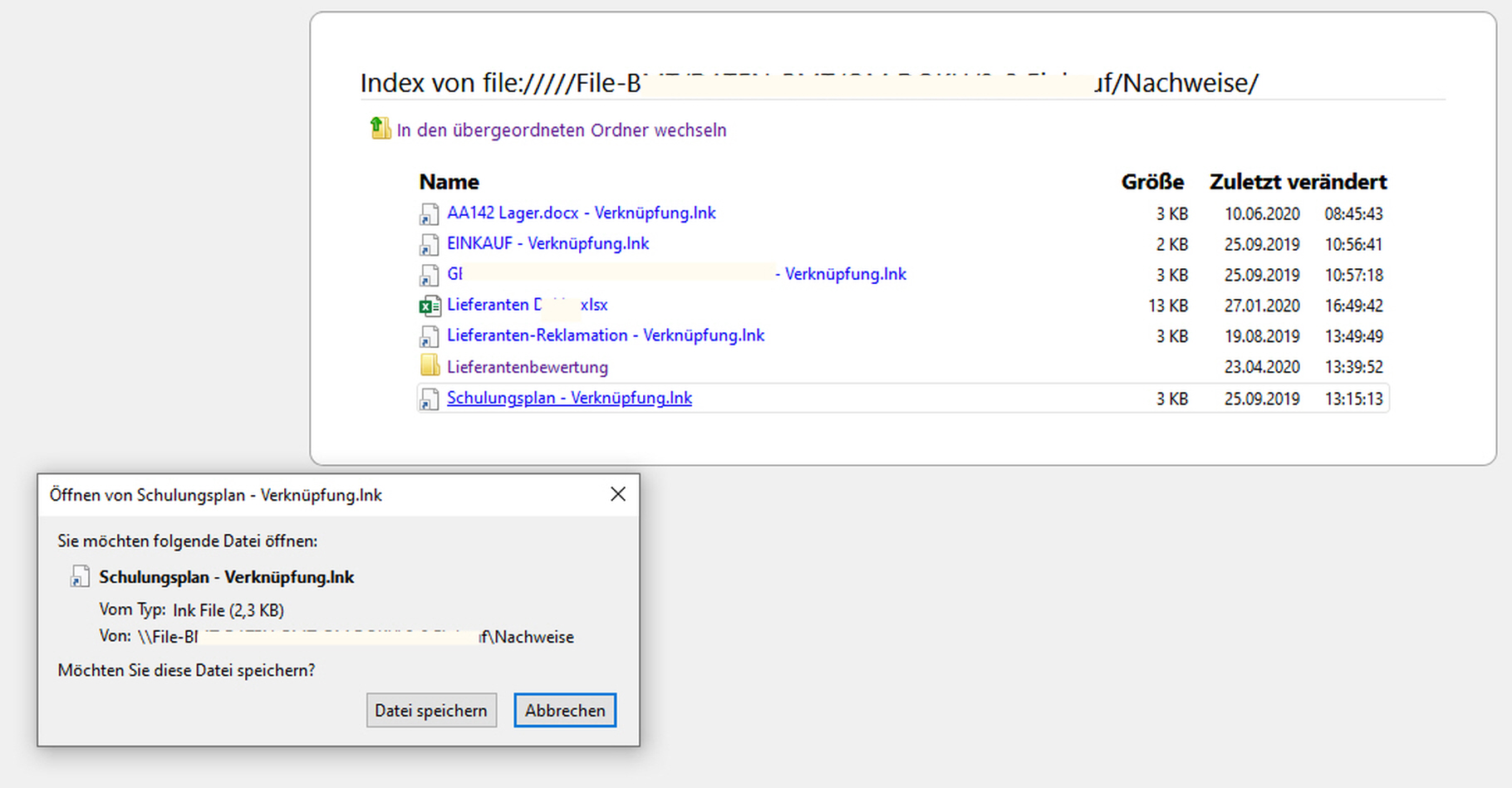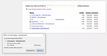 Wir nutzen auf einem Netzlaufwerk eine htm-Datei, aus dieser wird über ein Icon ein Ordner auf einem Fileserver geöffnet.