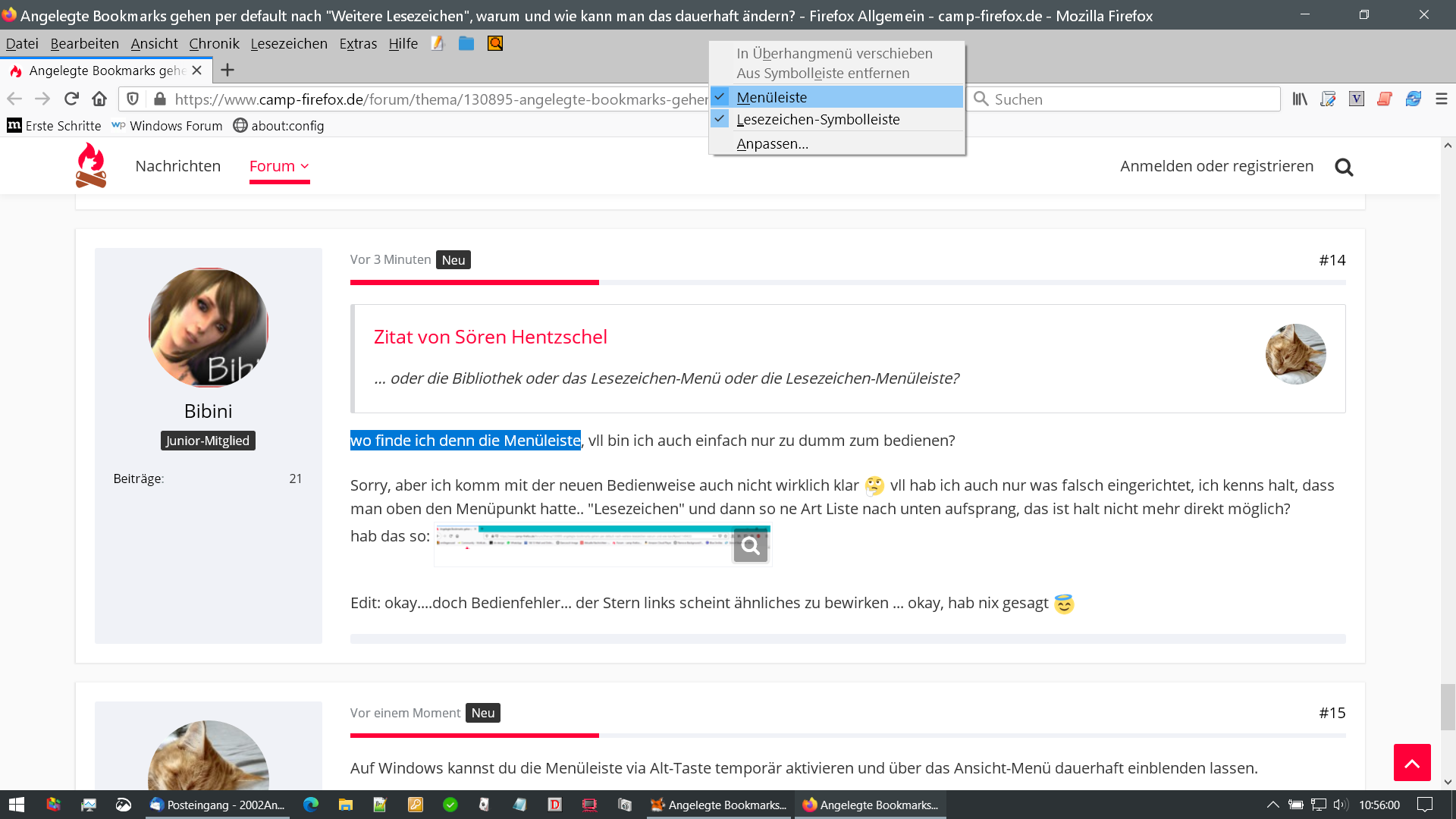Ich will einfach nur auf "Lesezeichen" klicken, dann alle von mir angelegten Links sofort zur Verfügung haben und nicht erst noch auf den Menüeintrag "Weitere Lesezeichen" klicken müssen...