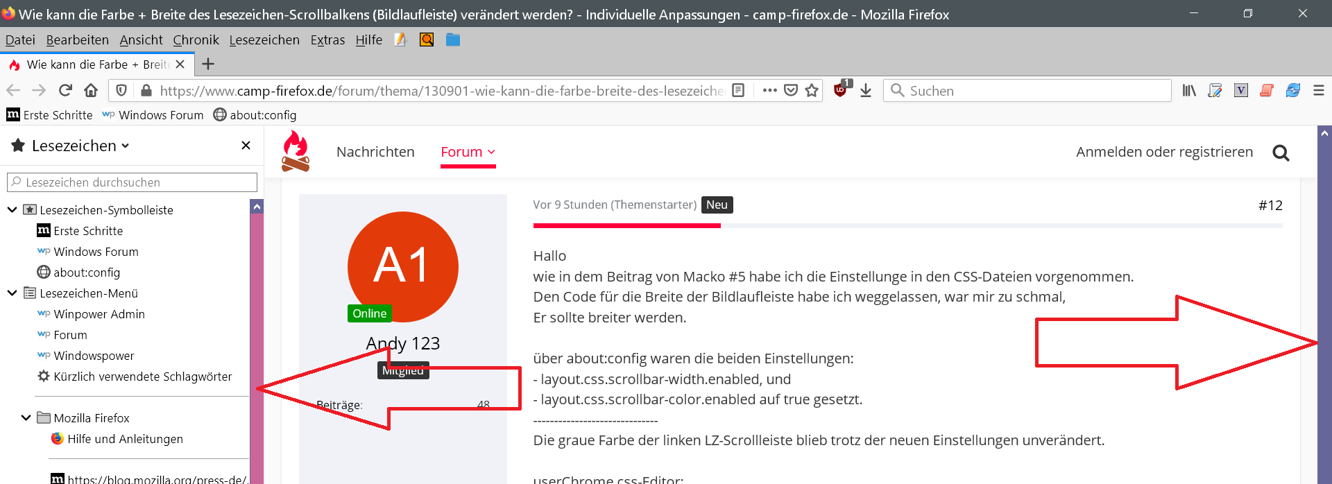 Wie kann die Farbe + Breite des Lesezeichen-Scrollbalkens (Bildlaufleiste) verändert werden?
