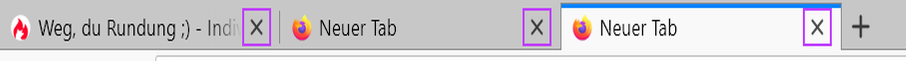 Bei den "Tab schließen"-Buttons sehe ich bei genauem Blick aber noch innerhalb der eckigen Umrandung