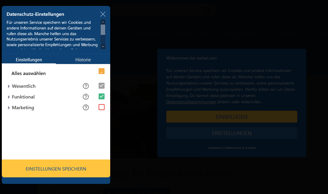 Er wird wohl das von mir gemeinte Häkchen bei „JavaScript deaktivieren“ meinen. Das darf nicht drin sein.