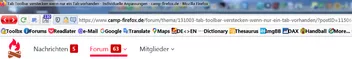 • Das macht bei mir das Script HideTabbarWithOneTabv10.uc.js