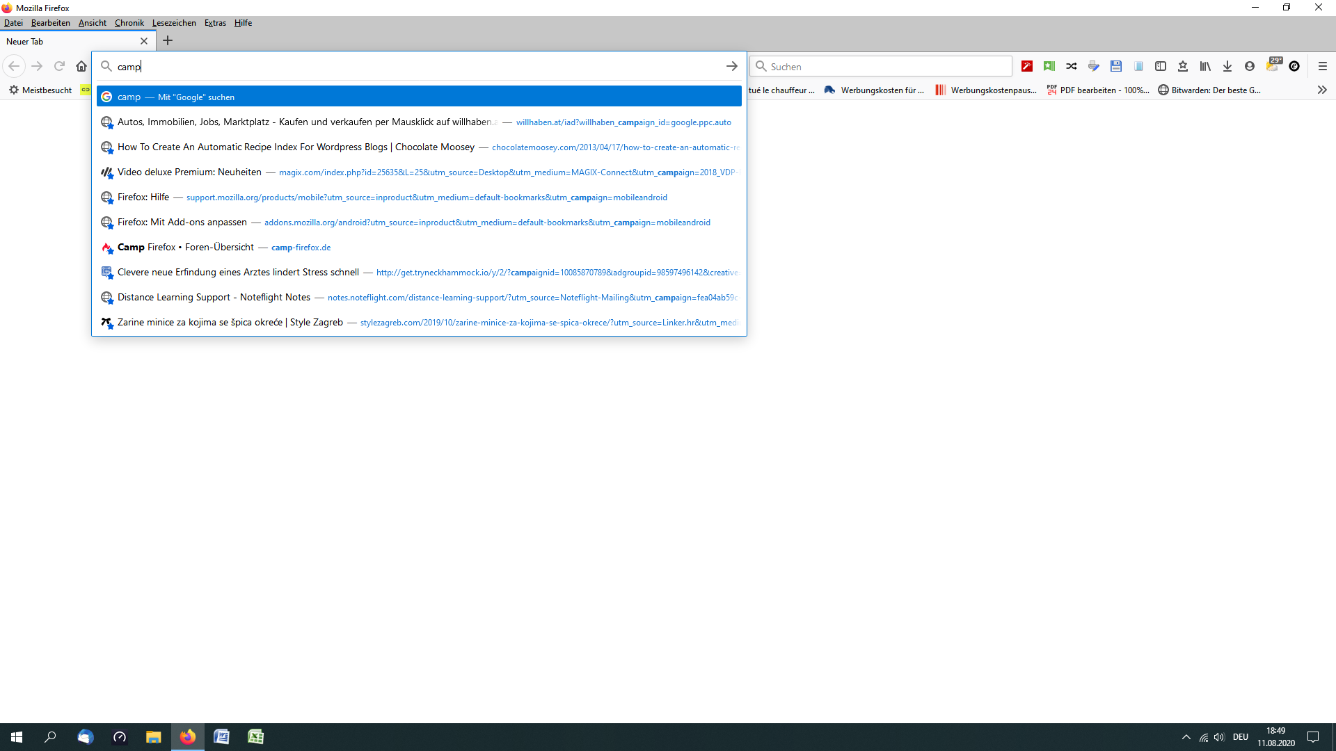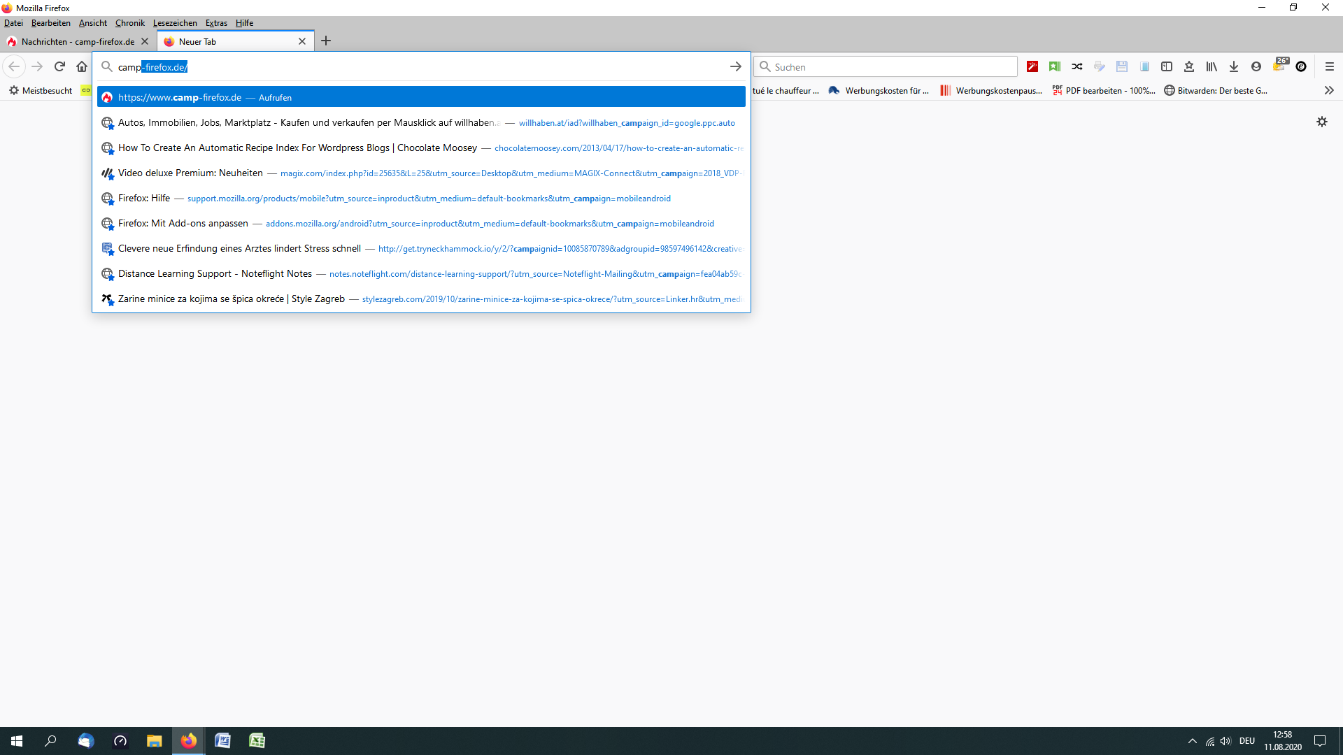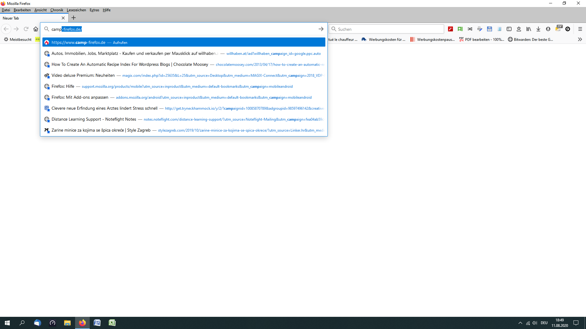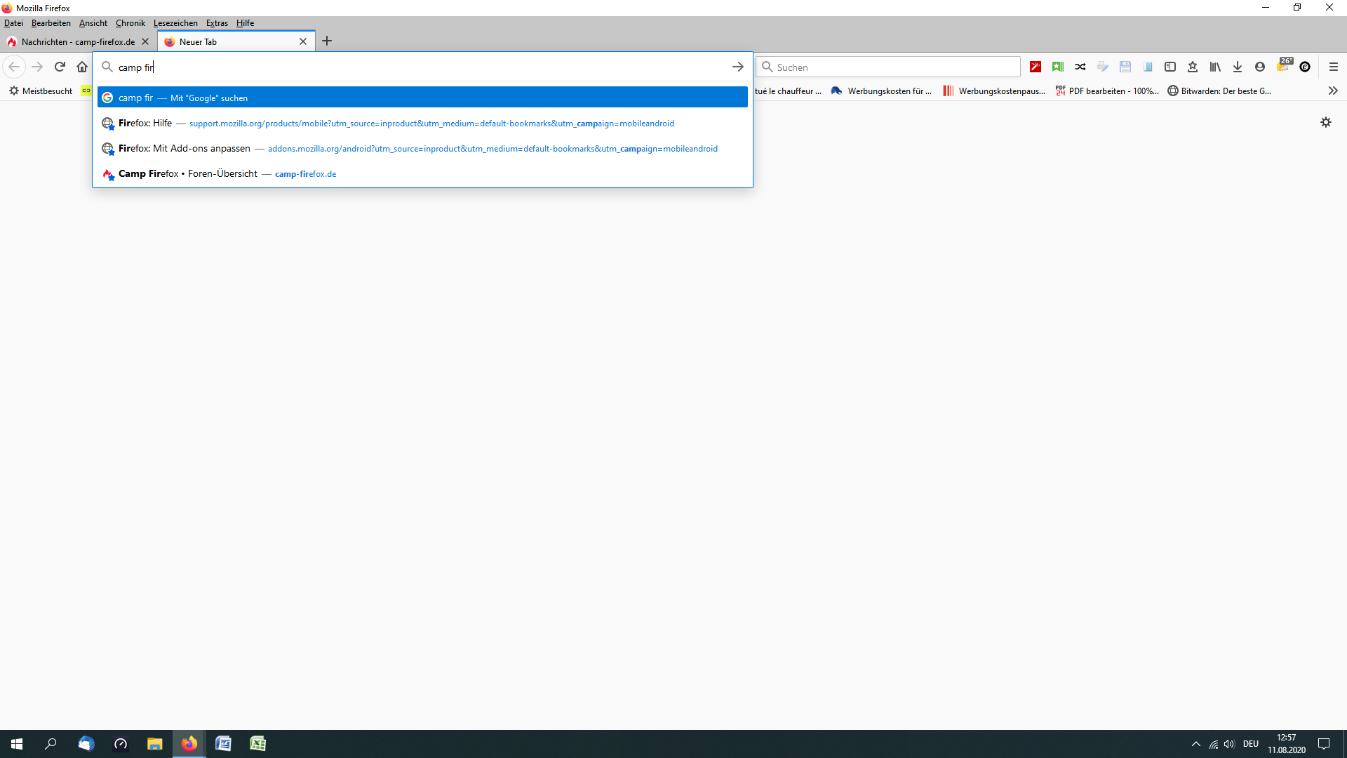 Der Punkt ist: warum zeigt es beim Wort "camp" nicht sofort den Lesezeichen-Eintrag der Seite http://www.camp-firefox.de an? Ist das normale Verhalten der Adressleiste?