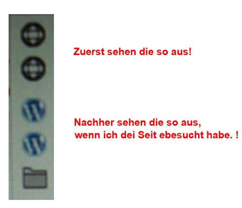Du hättest bloß ein größeres Bildschirmfoto machen brauchen, wo man auch die Umgebung der Schaltflächen sieht. Auch Zitronella konnte nur vermuten. Wenn das Lesezeichen sind, klicke einfach mal auf die beiden, wo nur die Weltkugel angezeigt wird. Diese sollten sich dann auch in das WordPress-W verwandeln, sofern es sich auch um WordPress-Lesezeichen handelt.