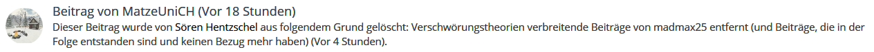 • Wer den Beitrag geschrieben hat (Screenshot), ist letztendlich unerheblich, da er unsachlich ist und zu Recht gelöscht wurde.