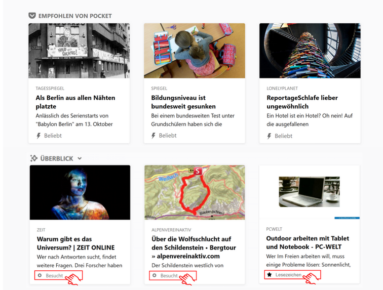 Lesezeichen sind vorhanden und über den Tag verteilt wurde auch mehrfach gesurft. Das Feld Überblick bleibt allerdings weiss.