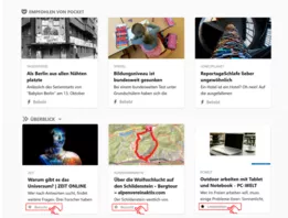 Vorher hatte ich dort meherere Kacheln mit Vorschlägen zu Webseiten / News die regelmässig aktualisiert wurden.
