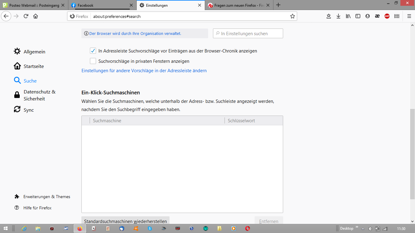 Nach dem Update und nun Version 80.0.1 kann ich keine Suche mehr ausführen, weder in Adresszeile noch unter Suchen. Auch eine Standardsuchmaschine ist nicht einstell- oder änderbar. Neustart brachte auch nichts. Irgendwas ist faul.