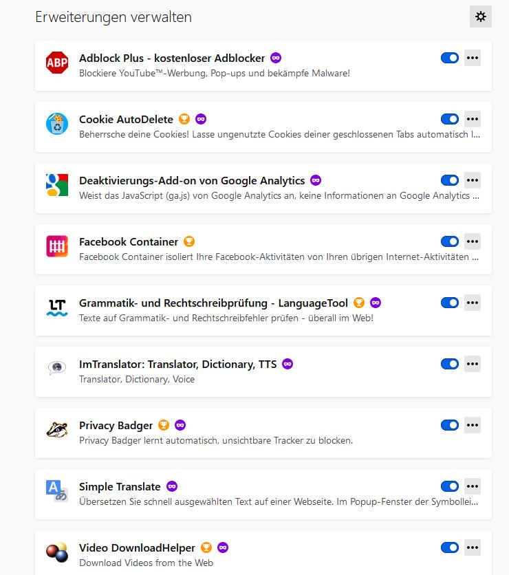 Ghostery, Privacy Badger und die Google-Erweiterung kannst du gleich mit entsorgen, dass macht nämlich auch schon Adblock Plus.