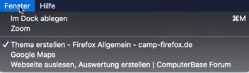 Ich bin einer derjenigen, bei dem permanent dutzende von Tab's offen sind. Um die Sache zu erleichtern, lege ich pro Problemkreis ein neues Fenster an. Nur leider wenn ich das Fenster wechseln will, steht in der Fensterauswahl immr nur die im jeweiligen Fenster geöffnete und wenig hilfreiche Bezeichnung der zuletzt geöffneten Webseite. Wenn zufälligerweise in mehreren Fenstern zuletzt einen Google Search gemacht wurde (was sehr oft vorkommt), dann habe ich mehrmals Goolge als Fensterbezeichnung ! Die Reihenfolge der Fenster ist auch nicht nützlich, wenn ich des öfteren auch ganze Fenster schliesse oder wieder öffne ändert sich auch die Reihenfolge.